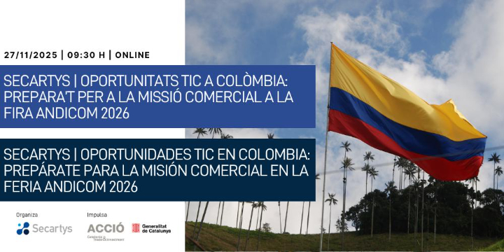 Per preparar la participació catalana a la pròxima edició d’ANDICOM 2026, des de Secartys -amb el suport d’ACCIÓ- organitzem una sessió online informativa gratuïta on donarem a conèixer tots els detalls de la missió comercial 2026 a Colòmbia.